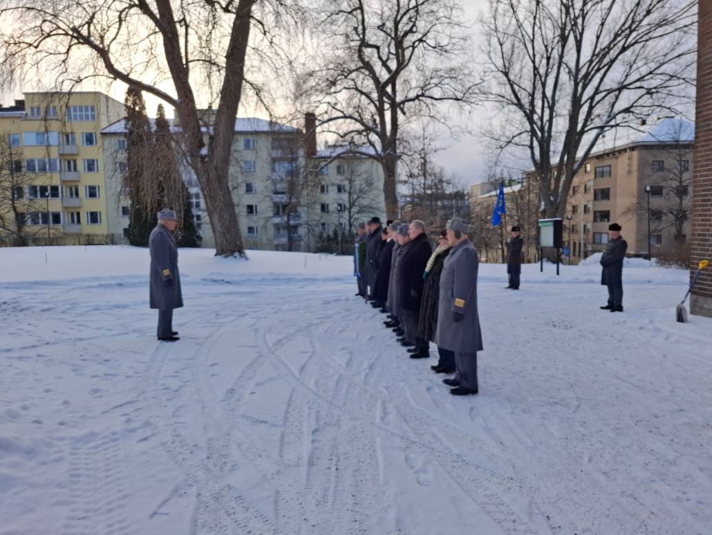 Lahden kadettipiiristä oli 14 henkilöä laskemassa Kadettikunnan vuosipäivän johdosta seppeleen Vapauden hengetär -patsaalle sankarivainajien muistoa kunnioittaen, jonka jälkeen siirryttiin Upseerikerholle lounastamaan.